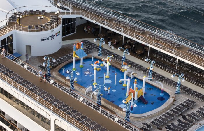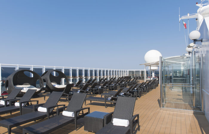 • Utilizzo di tutte le attrezzature della nave: piscine, lettini, palestra, vasche idromassaggio, biblioteca, discoteca, tennis tavolo, capo da tennis, campo da pallavolo, percorso jogging