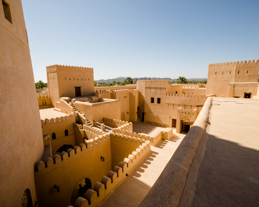 Castello di Jibreen: Il castello di Jibreen è diverso dagli altri forti dell’Oman perché non è stato costruito in tempo di guerra e non è una fortificazione che è stata ampliata da diversi Imam nel corso dei secoli. Si tratta sostanzialmente di un palazzo costruito in tempo di pace da un sovrano appassionato di scienza e arte e che lo ha reso il più bel castello storico del Sultanato. Il castello è alto tre piani, presenta due torri, numerose sale di ricevimento, sale da pranzo, sale riunioni, una sala di corte, una biblioteca e aule. Il design degli interni del castello presenta finestre decorate, balconi in legno, archi con calligrafia araba incisa e opere d’arte mozzafiato sul soffitto.