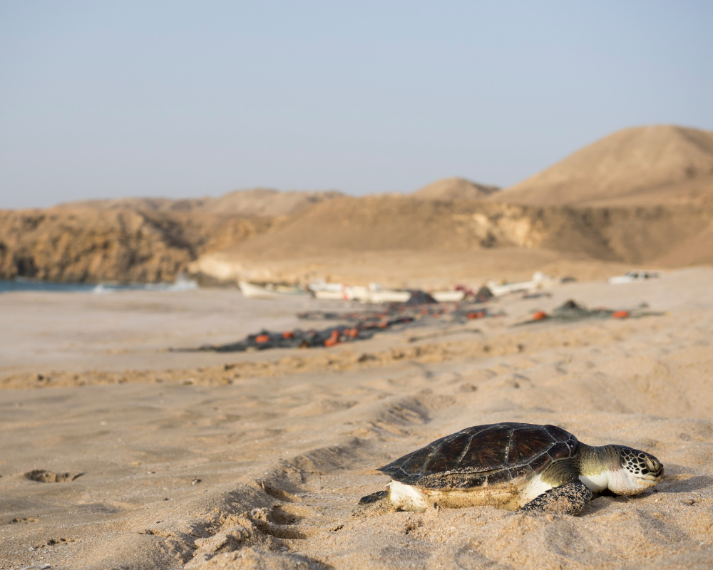Il Ras Al Jinz Turtle Centre, un vero progetto di ecoturismo, è stato fondato invece nel 2008 per contribuire alla conservazione degli affascinanti e straordinari processi di nidificazione delle tartarughe marine dell’Oman, considerate un tesoro nazionale di inestimabile valore. La spiaggia di Ras Al Jinz è famosa in tutto il mondo per la nidificazione della tartaruga verde (Chelonia mydas), specie a rischio di estinzione, e probabilmente ospita la concentrazione di nidi più importante dell’Oceano Indiano.